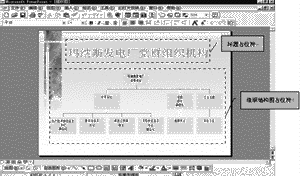 3.接下来,我们将对这张“毛片”做进一步的编辑工作。首先,依照占位符提示输入标题“玛纳斯发电厂党群组织机构”(其字体、字号及颜色等均由模板提供默认值,若不满意可修改) →双击组织结构图占位符,进入组织结构图编辑窗口,在这儿建好组织结构图,填入相应的内容后退出并更新保存至演示文稿即可。如图3所示,一张新的幻灯片就生成了。接下来只需单击文件菜单并选择保存,将已经做好的演示部分保存即可。