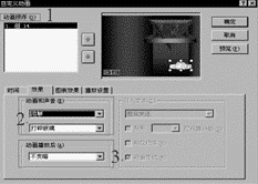 6.添加动画:在演示文稿内容编排完毕之后,为幻灯片集加入动画效果,可以使演示文稿更加生动有趣。以图4中的徽标(它是用Word制好作为对象粘贴至幻灯片而成)为例,由于徽标是整套演示文稿中共有的对象,因此该对象被放置在母板中,这样,每张幻灯片中就都有了这个标志。设置它的属性时,也必须到母版中去激活它。单击[视图]→[母版]→[幻灯片母版]→进入幻灯片母版→单击徽标图形→单击[幻灯片放映]→[自定义动画]→弹出“自定义对话框”(如图5)。在图5的动画和声音的下拉式列表中选溶解(动画)和打碎玻璃(声音),在动画播放后的下拉式列表中选“不变暗”→单击“确定”按钮→关闭母板返回幻灯片视图。