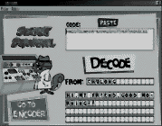 Decoder不论是在加密还是在解密过程中,都有一个“松鼠博士”在一台机器旁繁忙地进行操作,看似正在进行加密或解密,然后逐渐显示加密或解密后的信息。并且在操作过程中和显示解密后的信息时还伴随着一种合谐的声音,给人一种生动的感觉。