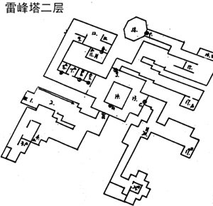 下二层后在2处。二层并不难,唯一有价值的可算6处的火神禁咒秘传书。可先在11处取得铁钥匙,即可开启宝箱。9处不宜久留,会不断出现蚁怪,10处有两个机关,需仔细搜索后方可破阵。千万不可硬闯,除非你已成“血牛”。下三层的出口在12及13处,笔者建议先从13处下。
