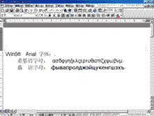 因为Windows 3.X每次启动时都是载入与其版本相对应的代码页,即只支持单一代码页(DOS也一样)。其中除了ANSI字符集、相应的DOS字符集,就只有该版本代码页中所支持语言的字符了,而对于使用这些字符集之外的语言自然就无法被调出来显示了。Windows 95为了支持混合语言,采用了大字体。在大字体中通常包含多种字符集,如GBK字体中就包含了采用GB码和BIG5码的汉字。不过Win95中大字体的使用还不普遍,大字体需单独安装。在Windows98中,开始支持称为Extended Windows ANSI(也称为WGL4)的字符集,该字符集包含了652个字符,除了标准ANSI字符外,还有俄语、希腊语、土耳其语等多种语言的字符,大字体技术虽然向多语言支持迈进了一步,但仍然脱离不了代码页的映射和转换,所以一旦文档被另存为不带格式的纯文本,被转移到另一台没有安装多语言支持或相同字体,文档的显示结果将会是部分字符无法显示或乱码一堆。这种情况在如今大量通过网络进行信息传递的时代屡见不鲜,也是使用代码页技术的最大弊病。图三和图四表明了用Win98 Arial字体可正常显示的希腊字母和俄文在换用Win95 Arial字体后全部无法显示。