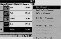 1.首先在“Channels”(通道)面板的右上角的三角形中点击“New Channels”(新建通道层)出现一个新的通道层(图8)