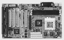 PRO芯片组,Slot1架构,提供1AGP+4PCI+2ISA和3条DIMM插槽。南桥芯片为VT82C693A,支持PC133的规范;北桥芯片为VT82C686A,支持Ultra