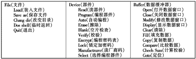 选定主菜单中“DEVICE”中的“SELECT”项,在出现的芯片类型列表中选择相应的芯片类型和容量。