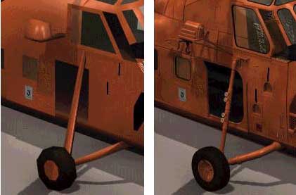 光照引擎与变换引擎相似,这个引擎计算射到3D影像物体上的光线向量,以及物体反射到人眼中的光线向量。根据定义,向量包括有关方向和距离的信息。光照引擎也必须将长度或距离信息和方向信息分开,这将简化3D流程以后的步骤。光照计算将用于顶点光照,例如先进的雾化效果。事实上几何图形的变换和光照的使用已成为普通PC机上实现更加复杂的3D图形的最大障碍。这一难关已经迫使软件开发商限制3D人物和环境几何图形的复杂性,用牺牲图像质量并精心制作3D环境,以维持期待的执行效果。变换引擎是克服几何图形执行难关最有效的方法,它为软件开发商带来了新机遇,可以在他们的3D世界中添加更多的几何细节。就像图2所显示的那样,使用更多的多边形可以使物体具有更加逼真生动的效果。左图中的图像是当今游戏所能提供的最好的和具有代表性图像。整个图像由998个多边形组成。右图是下一代图像所能提供的图片,其中包括100000个多边形。请注意,由于被迫减少多边形的数量,左图图像中的大多数细节几乎全部丢失,从而造成缺乏逼真感。请注意左图中的轮子是八边形的,而右图中的轮子却是圆的。这些微妙的细节将为制作生动的交互式图像的工作带来巨大的不同。