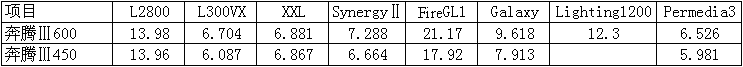完成性能测试以后,我们进行了显卡对CPU依赖性的测试。我们从Viewperf6.1.1中选取了ProCDRS-02这个项目的得分作为标准,然后将CPU换为奔腾Ⅲ450,数据参见表七。我们可以看到像GVX1、XXL这类显卡上有强力浮点引擎的加速卡,对CPU的变化并不敏感,而那些内建或没有浮点引擎的显卡对CPU的依赖性较强。