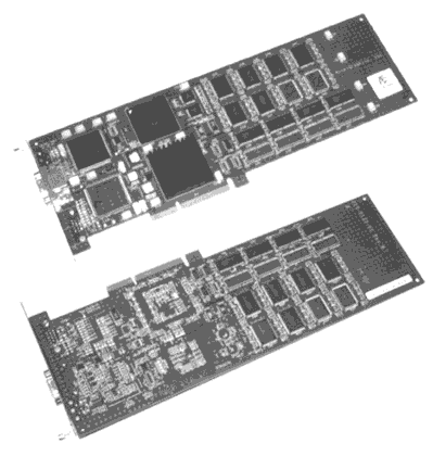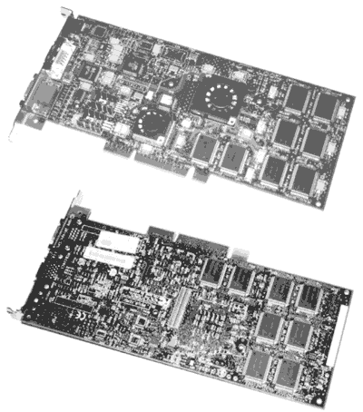 E&S公司是一家真正的专业图形加速卡生产商,Galaxy和Lighting1200是面向低端专业卡市场的产品。其实它们的差别并不大,只是3D渲染芯片有所不同。这两块加速卡有一个显著的特色,都使用了E&S的传统优势显存——3DRAM和CDRAM。这两种显存都来自三菱公司,并不常见。3DRAM是专门为3D图形设计的一种双通道显存,速度非常快,价格当然也非常昂贵,它特别适合用于动画处理,因此Galaxy和Lighting1200在SoftImage和MAYA等软件中的渲染速度完全可以和一般UNIX工作站用的显卡相抗衡。