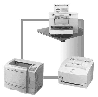 激光打印机现阶段的目标客户群主要集中在办公领域,在这种环境下,一个办公室或一个部门的人员往往需要使用同一台激光打印机,而最为有效地使用方法就是通过网络来共享打印机。共享的方法有两种,一种是将打印机通过并口连接到位于网络中的一台计算机上,这台计算机通过共享设置来允许其它计算机使用打印机,另一种方法是把专用的打印服务器(通常是一块特殊型号的网卡)安装到打印机之中,然后将打印机直接挂在网络上,由打印服务器负责接收打印数据,并交给打印机来输出。第二种方法是真正意义上的网络打印,可以实现高速打印,并且不会因为计算机未开机或出现故障而无法打印。