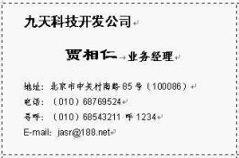 以上方法,有兴趣的读者不妨一试。名片是个极具个性化的交际工具,读者尽可在编辑名片文档时多加试验,加入能够体现个性的成分。
