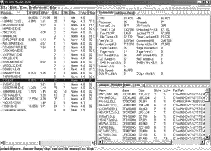 资源的占用率也是评测一个软件的重要依据。我们对这七个资源管理器在CPU占用、内存占用及GDI资源占用也分别进行了多达10次的测试(使用具有权威性的测试软件——TaskInfo98进行评测,如图2)。经过综合评比,选出了资源占用率低的第一名:Windows Commander 4.0,以0.05%的CPU占用率、1.56MB的内存占用以及2%的GDI占用率夺魁。