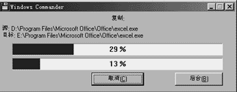 由于Windows 9X是属于多任务、多线程的操作平台,所以,我们也希望资源管理器也能支持多线程复制、移动等操作。正好Windows 资源管理器的复制和移动功能支持多线程,而这七个资源管理器都支持调用Windows 的标准动态链库功能,所以只针对它们自身带有复制和移动功能进行测试(Turbo Browser 98和Explor2000 只支持 Windows 标准动态链库的功能调用)。测试结果表明:Windows Commander 4.0 Beta 2、Drag and File 、FileProbe和EF Commander都支持多线程功能,而Win Navigator不支持多线程功能(如图5)。