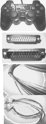 为了不损坏手柄的本来面目,采用了一种折衷的办法,因为手柄的插座实在太难找了,连加长线之类的插座也很难找,所以我将25针插座拆开,利用它里面的插管代替插座。(当然你只想在PC上用,大可不必劳神费力将PS的接口上的一圈塑料锯掉,将线直接接到针上!)