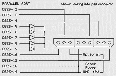 注:1.普通的PS手柄也可接5个,只是不须接9v的电源,同制作2个PS手柄一样,并口的第18、19针任接一针到手柄的第4针上即可!