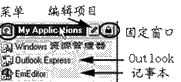 将鼠标移动到屏幕的顶部(紧靠顶部,参见图1),则弹出PopMouse设定的顶部快捷菜单(图3),这个快捷菜单很简单,只有三个菜单操作选项,但这三个选项都很常用,用鼠标点击某项,就可以很快地打开项目中列出的程序。注意,这个快捷菜单可以自动关闭,当然,你也可以将菜单窗口固定。