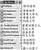 在PopMouse中,预先定义了左、右、上三个方向的快捷菜单。而下部的快捷菜单没有预定义,但你完全也可以自建一个下部的快捷菜单。