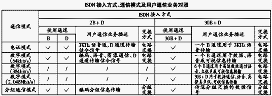 ISDN主要采用两种标准的用户/网络接口:基本速率接口BRI(2B+D)和基群速率接口PRI(30B+D)。目前我国的ISDN线路一般为2B+D模式,即2个基本数字通道,1个控制数字通道。 每个B通道的带宽为64Kbps,D通道的带宽为16Kbps,因此一个2B+D连接可以提供高达144Kbps的传输速率,其中纯数据速率可达128Kbps。由于ISDN中终端与终端之间的通信是完全数字化的,因此ISDN的传送误码特性和信号失真特性比以前的模拟电话线路有了很大的改善。而且,ISDN相对于其它的一些高速接入技术来说是比较经济的,通过一对ISDN用户线最多可连接8个用户终端,可以大大节省投资。ISDN已经成为家庭办公一族最理想的选择。ISDN的申请和线路安装也比较方便,如果你家中已安装有一部普通电话,那么,只需到电信局办一个手续,你的电话线就可成为ISDN电话线(所有转换工作都在电话局内自动完成)。你也可以直接申请ISDN电话线,然后根据需要配置相应的ISDN终端,比如可视电话、TA(终端适配器)等。