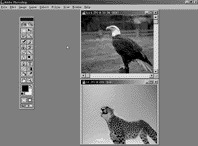 进入Photoshop5的图形操作界面,点击“File/Open”,同时打开选择好的老虎(Tiger)及鹰(Eagle)的源图片(图1)。在选择图片时应考虑两张图片的比例、透视、色差等因素。