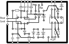 绘制电路板主要采用“直线”、“曲线”、“连续曲线”和“多边形”工具功能键来实现。具体采用哪种“线”布线,这要看元件管脚在电路板上的位置而定。如元件较少或没有元件,且走“弯路”的线,可采用“多边形”布线,否则,应采用“直线”布线,对于有“弧”的地方,可采用“ 曲线”或“连续曲线”布线。布线完毕后,可将线路全部选定,并进入线路的“对象属性”,选择合适的“端点”和合适的“线条”(增加宽点数字)。如有的线条(路)始端或末端不需设置端点,可单独进行修改。当然,如果在图库中增加合适的圆孔(直径2.2mm,且填充白色)对绘制电路板图是有帮助的。最后将整个电路组合在一起,并选设在“在文字下”。根据情况可适当的插入元件符号或标注元件序号或阻(容)值,一般情况下,只需标注元件序列号即可。标注结束后,还应和电路板图组合在一起,以便于移动或复制。按此绘制的电路板图如图5所示。