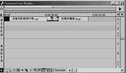 (3)将鼠标移到Clip窗口的画面部分上方,鼠标箭头将变成一个手形,按下鼠标左键拖动鼠标至Construction Window(布景窗口)的视频轨道A上,就可将定格前的部分抓取到Construction Window的视频轨道A上,关闭Clip窗口,如图2所示;