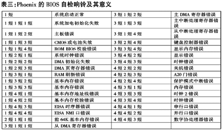 你了解BIOS自检响铃吗? 计算机启动后就通过BIOS对计算机进行自检。自检情况一般通过PC喇叭发出的响铃予以表达。了解这种响铃,对于诊断计算机硬件故障大有裨益。现在通常所用的BIOS主要有三个品牌:AMI、Award和Phoenix。它们自检响铃所表达的意义有所不同。其具体意义如下三表。
