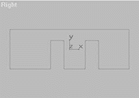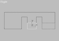 现在的“Wall01”造型好像一把只有三个齿的梳子,下面我们要创建三个方体分别放置在这把“三齿梳”的三个“齿”上,作为走廊墙面的墙围部分。为了叙述方便,在下面的内容中,我们就用“齿”来表示墙面主体下端的三部分墙面。