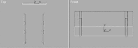 7.单击修改命令面板上的“连接”按钮,在右视图中,分别单击两个小矩形,将视图中所有的矩形连接起来。