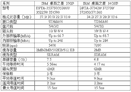 GB的单碟容量和IBM独有的5碟片技术,也足以傲视群雄。今年上年,IBM又一鼓作气推出了Deskrtar 37GP和Deskrtar 34GXP两个系列的硬盘,它们均采用Ultra