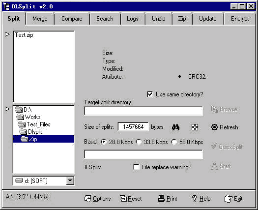 在我们体验它强大的功能后,却又找回对它已失落的好感:除了文件分割、合并,还自带压缩和解压缩功能,高达九级压缩比调节,在最高情况下与Winzip不相上下,相信是采用了同一种算法;文件搜寻功能远远超过了Windows的Explorer;支持长文件名、CRC32校验、历史记录、加密、文件修复等等;可生成一个DOS下的合并拷贝批处理bat文件。