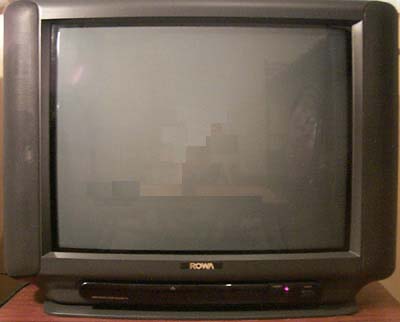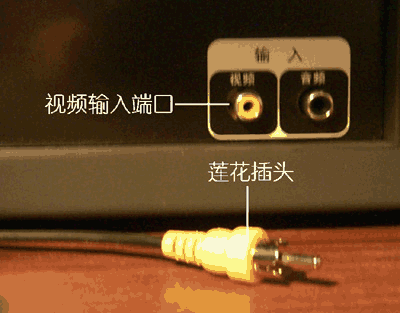 我们首先要找到显卡的电视输出部分。看到图3上面那个黄色的莲花插座了么(什么?报纸是黑白的?&$%@*#)?看文字也行,那个“视频输出”接口就是我们今天要用的东西。那个“S-端子输出”接口也是用来输出到电视机的,可是我的“高性价比”的电视机不支持S-端子输入。下面我们要找到电视机上的视频输入接口,它一般在电视机的背后,功能较强的电视机往往都具备多组AV输入接口,并且音频输入部分分为左右两个声道,通常我们可以通过颜色来识别,黄色的接口通常代表视频,红色的和白色的通常代表音频。至于我这台电视机,由于“性价比”过高,就只有一个视频和一个音频接口(如图4)。注意到下面那个莲花插头了么?那就是连接显示卡和电视机的信号线,通常支持电视输出的显示卡都会随卡附带一根这样的连接线,没有的话从电子产品市场上买一根回来也行。