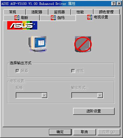 制式,而NTSC是美国日本等地采用的制式。一般情况下只要你的电视机是多制式的,选择各种制式都可以。至于我这台“高性价比”的电视嘛,选择NTSC制式图像会变成黑白的。“电视输出信”其实应该是“电视输出信号”,这是驱动程序的BUG。在这一项中你可以选择信号的输出方式,通常有“复合式”和“S-Video”两种,其中复合式就是我们所用的混合视频输出,“S-Video”就要用上文提到的S端子了。我们接着来进行高级设定(如图11):