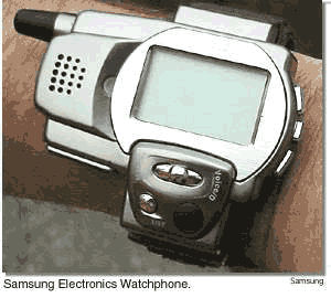 韩国三星电子公司展出的手表型手机,对应CDMA1900方式,主要面向美国市场,具体投产日期尚未明确。这款手表手机配置了128×64点阵的黑白液晶显示器,具备了日历和钟表功能,也可以显示电话号码,它的声音识别功能可以通过声音输入电话号码。三星还推出了配有2英寸反射型彩色液晶显示屏的MP3随身听“PhotoYepp”,它的显示屏像素数为280×220点阵,记录媒体为SmartMedia,可采用USB接口与计算机连接。这款MP3计划2000年1月投产,售价为399美元。据悉,三星还准备利用MPEG4处理影像数据。