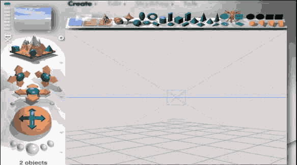 屏幕的左上方为图形的略图,当你改变视角或添加物品的是时候它就变化一次。在它下面的三个十字箭头是用来转换视角的,你可以进行三百六十度的旋转,然后用鼠标放你所要的物品。最下面的五个圆球,是用来看局部图形的,当你在作图的时候你可以用它对局部图形填色,看看效果如何。
