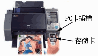 在IP-100的机身右侧,有一块大屏幕的液晶屏,操作面板上有许多按钮,比一般的打印机多得多,这些功能键是为控制直接打印而设计的,它们会让你感觉到这与在电脑上进行照片打印没有任何区别。在打印机正面,除了有一个出纸口外,还有一个PC卡插槽(如图1)。由于数码相机可采用闪存卡或智能卡甚至Memory