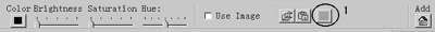 图10是背景特效的属性工具栏,当背景为纯色时,可以调整背景的颜色、亮度、饱和度和色调;此外COOL 3D 2.5还可以让你用JPG、BMP图像或是剪贴板内容作为背景,单击区域1中的按钮可以将文档放大或缩小到与背景图像一致。