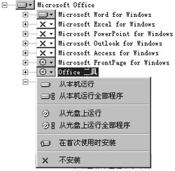 (3)选择不同的安装方式,如:“从本机运行”、“从本机运行全部程序”、“从光盘上运行”、“从光盘上运行全部程序”等。