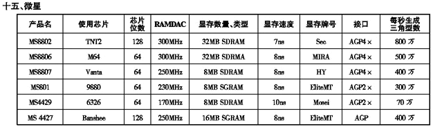 '99显示卡性能参数一览