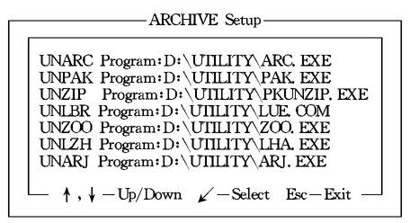 进入该项后,屏幕会出现如下菜单,要求用户输入有关压缩软件的文件名及全路径。