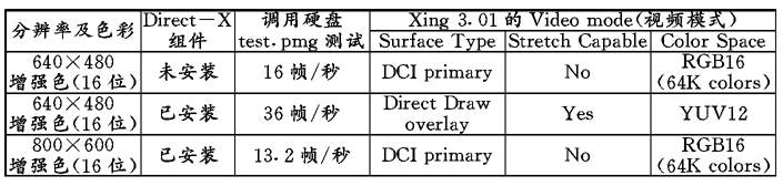 ①Direct Draw可以成倍地提高Xing的软解压播放速度,在实际播放VCD碟时声画同步,画面流畅,大大提高了本机的软解压性能。