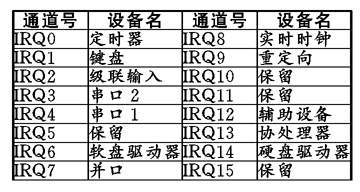 表表示了中断控制器和各个中断通道号对应的外部设备。