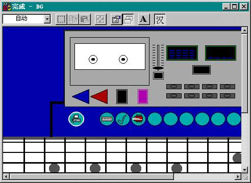 选好音色、音符时值,点击“录音机”的Rec键,既可以一口气用鼠标弹奏完,也可以按Step键不慌不忙地一个音一个音的弹奏直到完成,接着就可以按Play键播放刚才自编自弹的曲子了。若觉满意可以按Sav键储存,文件名后加GTR扩展名。