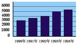 Excel常用图表的制作,不仅操作简单,而且制作快速。现以1990年至1994年国家财政收入总额表(该表为Excel数据表)制作二维柱形图为例加以说明。