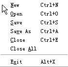File(文件)的下拉菜单见图2,从上到下意思为:新建、打开、存盘、改名存盘、关闭、关闭所有打开的文件、退出。当用Open打开图形格式文件时,会出现一个32×32小方框,方框内抓取的部分可作为图标。