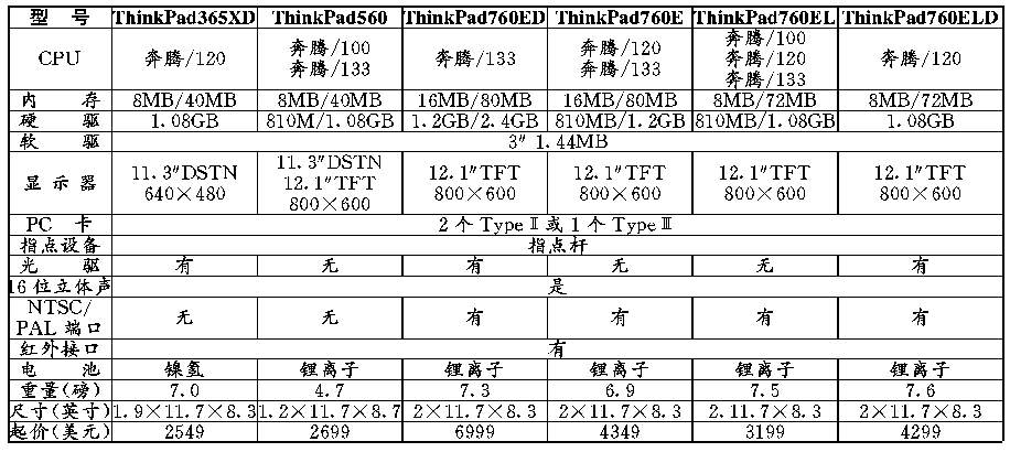 IBM品牌笔记本电脑配置一览 — 硬件与维修 — 电脑报 - Netscape