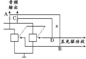 如图1,在V18上找到集成块U2,型号为MC3403,其第10、12脚即可作为左右声道音频输入端,再就近找一接地地点,把光驱音频输出线对应焊在此三点上即可(也可用立体声插座、插头对应焊接,以方便拆解)。另外,打开光驱后盖,在电路板上找到面板音量电位器,如图2,在打“X”处切断,用a,b两根细导线将A与B、C与D焊接,这样就可在放CD时用光驱面板电位器控制输出音量了,非常方便。(注意:焊接用电烙铁不要超过35瓦,并且接地良好。)