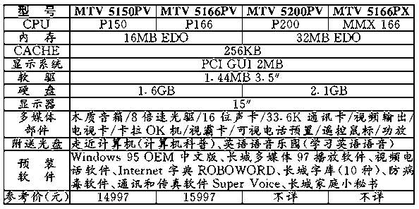 金长城MTV’97系列电脑配置表 — 硬件与维修 — 电脑报 - Netscape