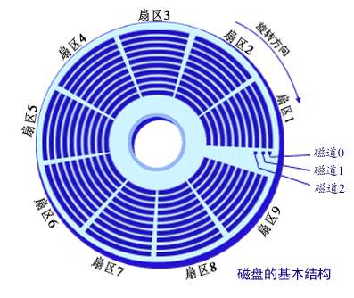 磁道被分成许多区域,每个区域叫一个扇区,每个扇区可以存储512字节的信息。靠近磁道的扇区比磁道边缘的扇区小,但是它们所存储的数据是一样的。
