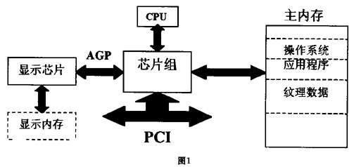 在3D图形描绘中,储存在PCI显示卡显示内存中的不仅有影像数据,还有Z轴的距离数据,TextureData(纹理数据)及Alpha变换数据等。其中储存纹理数据所需的显示内存容量需求是造成显示卡价格高昂的主要原因,美国3DLabs公司的副总裁说,要描绘细致的3D图形,储存纹理数据的显示内存容量几MB是不够的,它越多越好。因此,3D显示卡的制造厂商所期待的,就是既能增加纹理数据的储存能力,又能抑制成本的新型显示卡。从整个系统来看,增加显示内存还不如增加主内存划算,因为用作主内存的DRAM的价格已不太昂贵,而且把纹理数据储存在主内存比储存在显示内存更可有效利用内存。存储纹理数据所需的内存空间依应用程序而定,也就是说,当应用程序结束后,它所占用的主内存空间又可恢复,纹理数据并不永远占用主内存的空间。