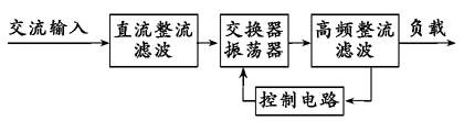 486以上的微机电源采用的都是双管半桥式无工频变压器的脉宽调制变换型稳压电源,其基本结构如图所示。它将市电整流成直流后通过变换型振荡器变成频率较高的矩形或近似正弦波电压,再经过高频整流、滤波变成低压直流电压提供给负载,并且通过控制电路对振荡器输出的脉宽进行调制,从而实现稳定输出直流电压的目的。486以上微机电源功率一般为230W~250W,通过高频滤波电路共输出四组直流电压:+5V(20A)、+12V(8A)、-5V(0.3A)、-12V(0.3A),为防止负载过流或过压损坏电源,在交流市电输入端设有保险丝,在直流输出端,设有过载保护电路。