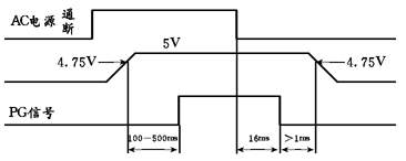 PG信号的特点从图中可以看出,加电后当+5V电源电压上升到4.75V时,延时100到500ms,PG信号变为高电平,允许电脑启动,开始正常工作。当市电消失时,首先经16ms的保持时间,然后比5V电源下降到临界电压4.75V的时间至少提前1ms,PG信号消失。该信号对加电时和掉电时保护软硬磁盘十分关键。无PG信号,主机不具备运行条件,不能对磁盘进行任何操作,保证软硬盘驱动器读写头在电压正常后脱离盘面后才能运转,避免划伤盘片。