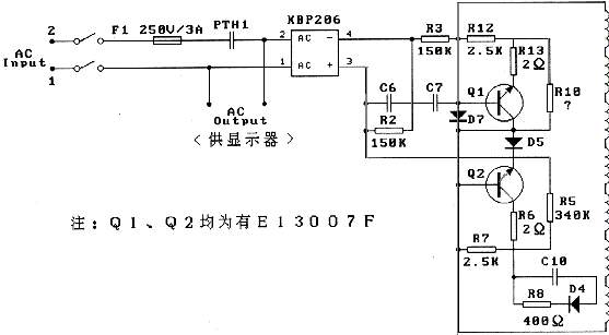 开关管是开关电源电路的核心器件,其性能好坏直接影响整个开关电源电路的工作状态。开关管长时间工作于大功率(高电压、大电流)状态时,很容易受到损坏。开关管性能降低,特别是其放大倍数β值变小时,易造成开启难等故障。对输出特性好,只是β值略变小的开关管,可采用适当减小启动电阻的方法来解决“开启难”问题。用万用表测量R10时,发现R10已增至2400KΩ(色环值为340KΩ)。换上阻值为340KΩ电阻后仍不能正常启动。在Q2开关管难以代换的情况下,取下R10,选用一对360KΩ的电阻并联后试机,故障排除。